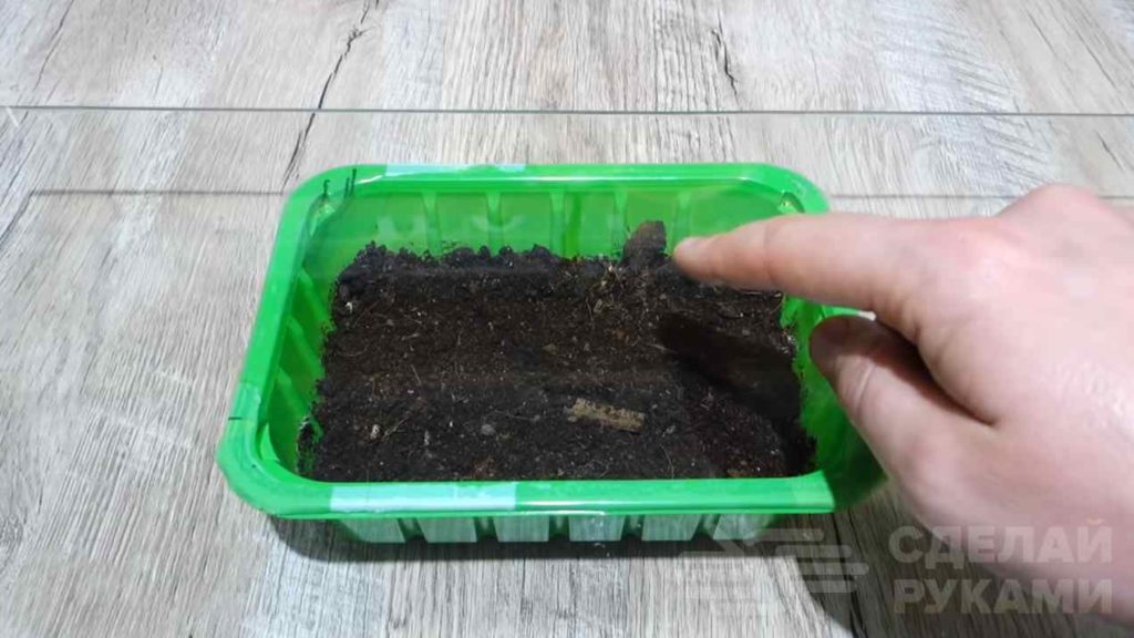 Первым делом нам потребуется емкость для грунта. Это может быть как пищевой контейнер, так и подходящая по размеру пластиковая упаковка от продуктов.