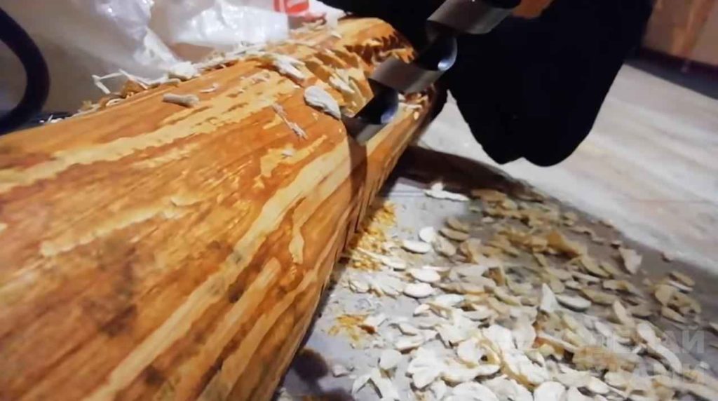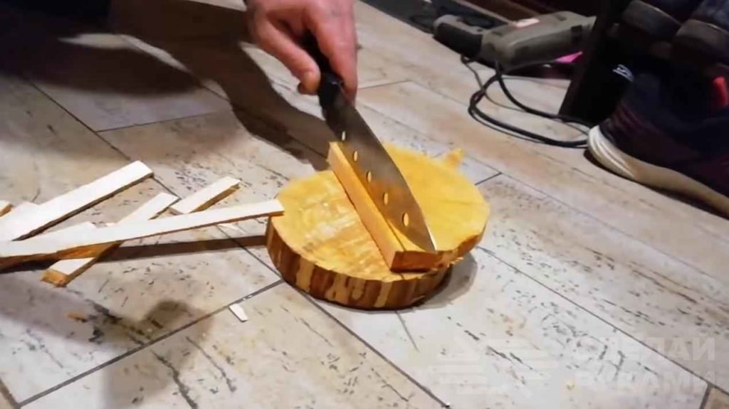 Еще один способ простой заготовки щепы — при помощи электрорубанка. Для этого автор использует заготовки круглой формы.