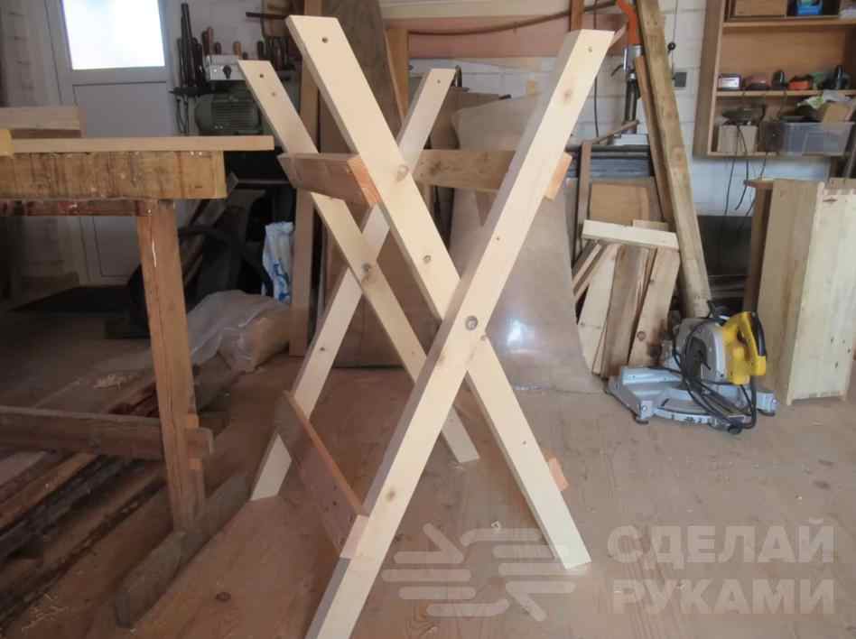 Соединяем все изготовленные элементы в единую конструкцию. В итоге получились складные ножки.