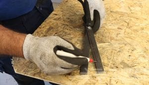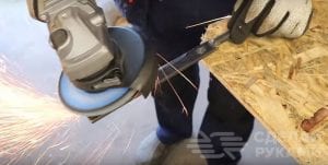 Затем края ручек нужно слегка согнуть на гибочном станке, чтобы удобнее было их держать, а на пластинах при помощи болгарки сделать режущую кромку. Далее две половинки ножниц с обрезанными под углом краями соединяются болтом с гайкой.