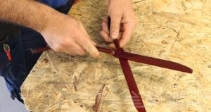 В качестве основных «стройматериалов» для данной самоделки нужно будет использовать две стальных пластины и два прутка круглого сечения, а также болт с гайкой для соединения деталей. Из инструмента потребуется болгарка, сварочный аппарат и приспособление, при помощи которого можно гнуть трубы и арматуру.