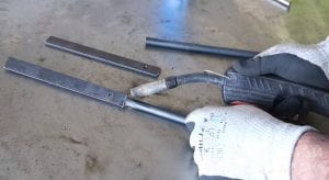 В стальных пластинах на расстоянии примерно 2–3 см от края сверлим по одному сквозному отверстию, после чего привариваем к заготовкам круглые прутки (лучше использовать именно пруты, а не арматуру, поскольку первые отличаются гладкой поверхностью).