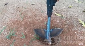 Бур подойдёт не только для рыхлой земли. Данной насадкой удобно делать лунки в больших количествах, а если взять циркулярный круг меньшего размера, то получатся мелкие лунки.