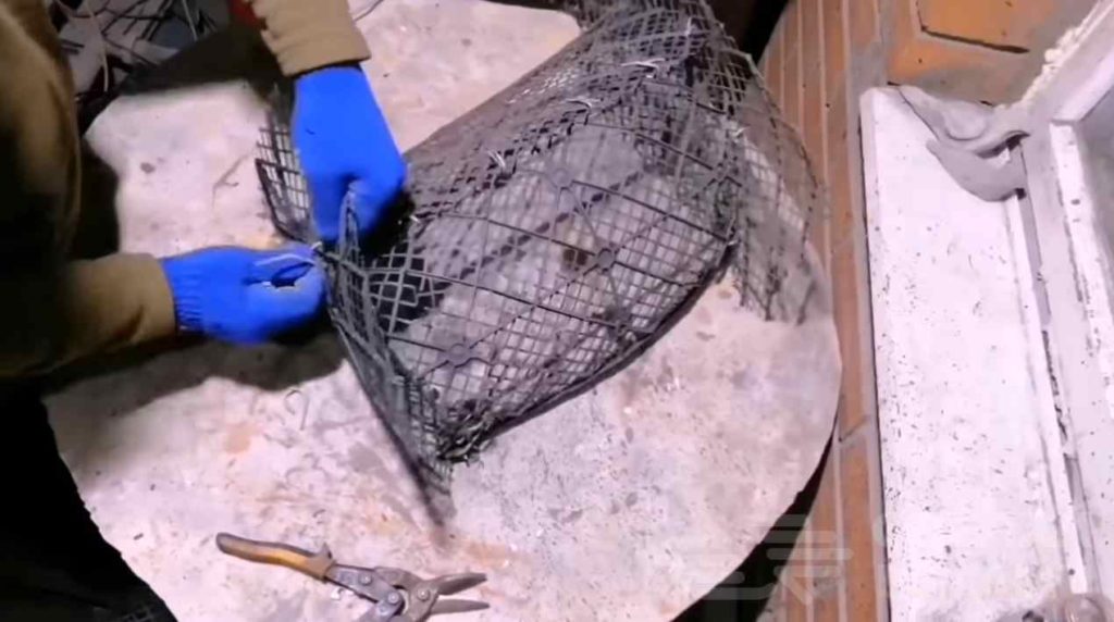 Первым делом вырезаем из ящиков дно. Соединяем их при помощи кусков проволоки в форме корыта. Края боковых частей обрезаем.