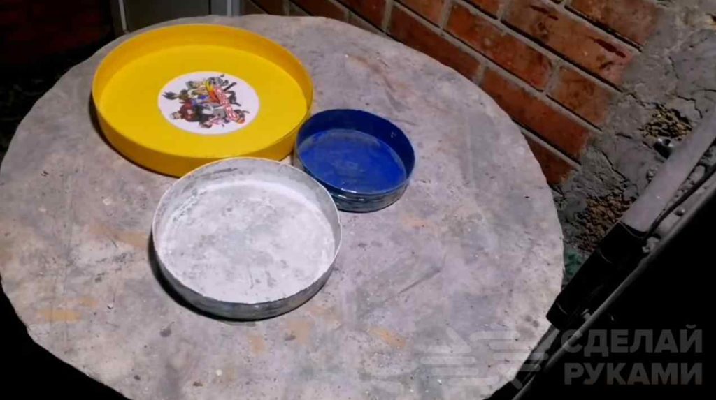 Для изготовления декоративных плиток потребуются многоразовые формы. Их можно сделать из старых пластиковых ведер из-под краски.