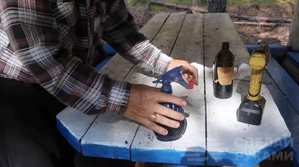 После этого переливаем получившийся раствор в пластиковую емкость (бутылку) с пульверизатором.