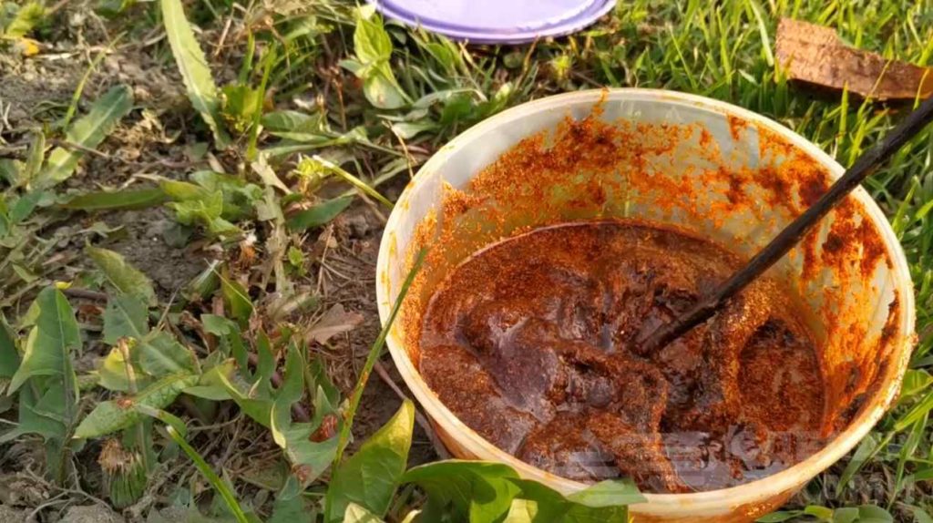 В приготовленную ядреную смесь опускаем толстый канат, и оставляем на некоторое время, чтобы веревка пропиталась в «маринаде».