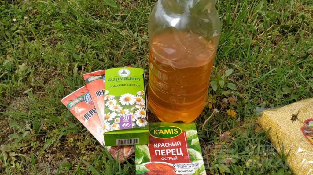 В подготовленную емкость (пластиковую или металлическую — не имеет значения) высыпает красный перец и ромашку.