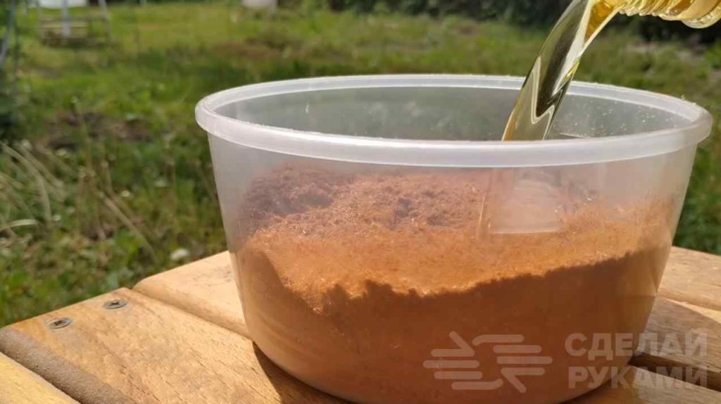 Все ингредиенты тщательно перемешиваем до однородной массы. Для этого можно воспользоваться обычной палочкой или пластиковой вилкой, вставленной в патрон шуруповерта.