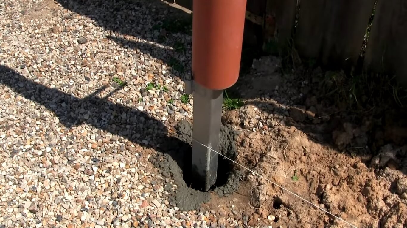 Иногда, в целях снижения стоимости строительства забора, на практике часто используются короткие металлические трубы. Обычно их забивают в землю на небольшую глубину или вкапывают в грунт максимум на 30-40 см, при этом бетонирование в данном случае чаще всего играет чисто символическую роль. Так делать не нужно, поскольку через несколько лет при продолжительных и сильных шквалах ветра забор из профлиста может попросту упасть.
