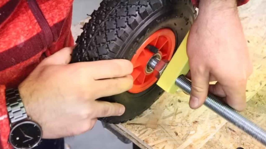 Потом раму приспособления нужно покрасить. И уже на последнем этапе мастер приступает к сборке. Сначала крепит колесо, а потом и сами грабли. Самоделка готова!