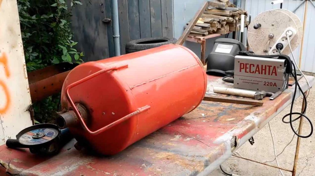 Вместо баллона огнетушителя можно использовать и любые другие емкости, которые найдутся под рукой. Можно даже взять кусок трубы подходящего диаметра и приварить к ней дно.