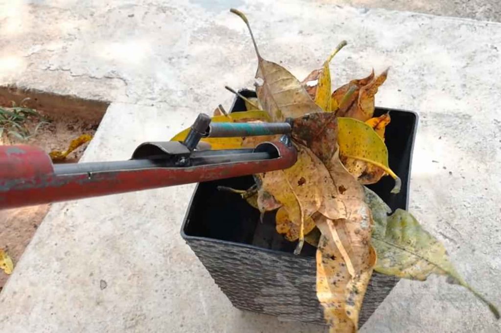 Впрочем, есть еще один простой вариант решения данной проблемы — изготовить своими руками самодельный инструмент для уборки опавших листьев. Для этого потребуется металлическая труба, стальной пруток и пружина.