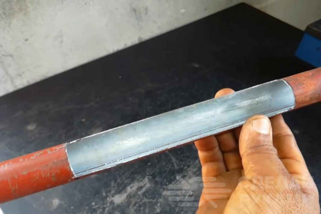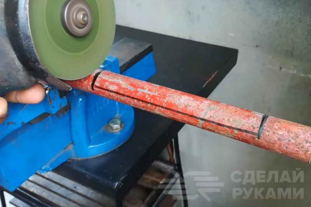 Края трубы в месте реза необходимо будет обработать с помощью болгарки или бормашинкой, чтобы убрать заусенцы. Можно и обычный напильник по металлу использовать.