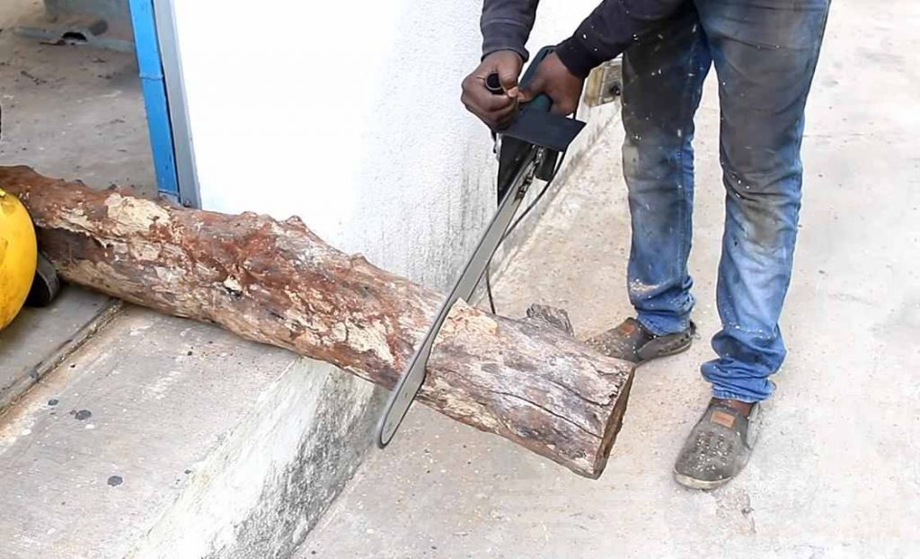 Мастера, которые уже делали электропилу из болгарки (УШМ) утверждают, что данный агрегат без проблем справляется с распиловкой небольших бревен, досок и брусков. Но пилить большие бревна таким самодельным инструментом все же не рекомендуется.