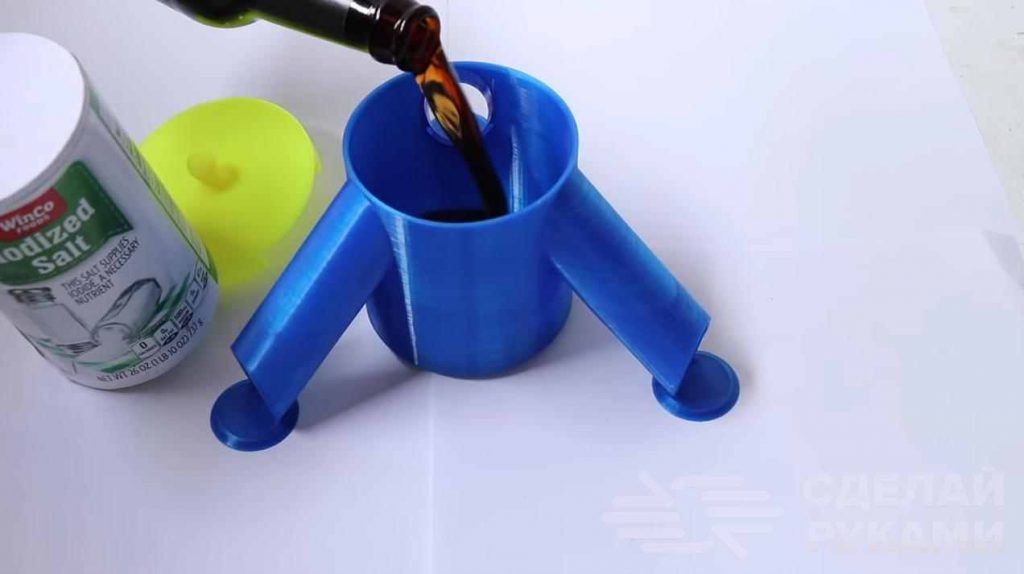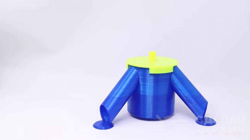 Автор сделал ее на 3D-принтере, однако можно изготовить похожее приспособление из подручных материалов. Сама конструкция ловушки очень простая — несколько входов и центральная часть с крышкой.