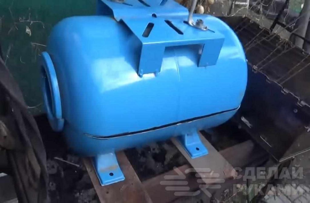 Конкретно в данном случае для изготовления барбекю-гриля автор использует баллон, который использовался в качестве бака для воды, поэтому к корпусу уже приварены 2 опорные «лапы».