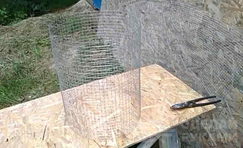 Первым делом отрезаем кусок металлической сетки. Сворачиваем его в рулон подходящего диаметра, и связываем проволокой края.