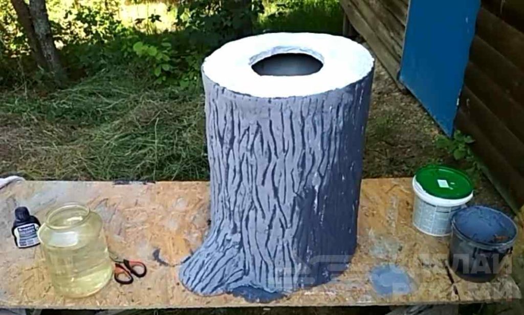 Подробно о том, как сделать декоративный пенек из цемента, можно посмотреть на видео ниже. Данный обзор создан на основе авторского видеоролика с YouTube канала «Советы без секретов».