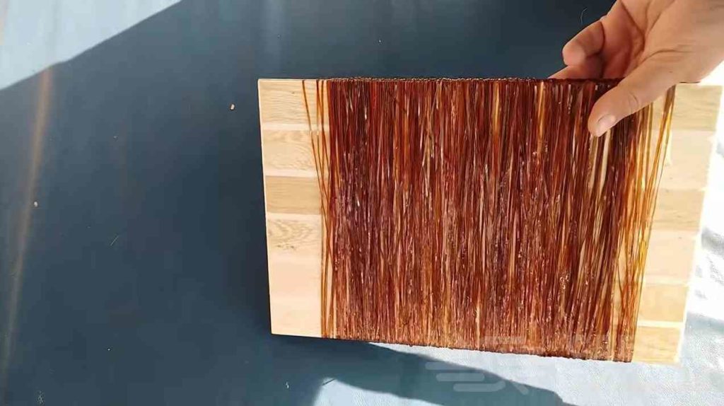 После того как распустили необходимое количество бутылок (автору потребовалось 10 штук), нужно будет намотать полосы на керамическую плитку или на кусок стекла подходящего размера.