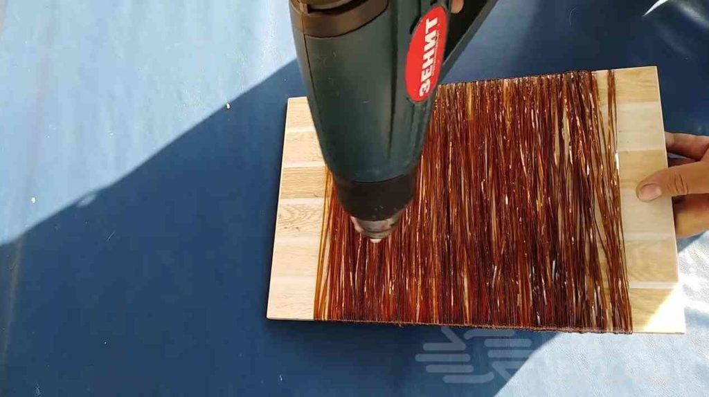 Прогреваем полосы строительным феном, чтобы они натянулись. Или же можно поместить намотанную «катушку» в духовку примерно на 4-5 минут.