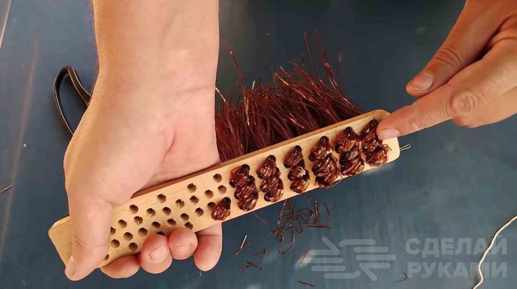 Далее вставляем в просверленные отверстия подготовленные пучки пластиковых прутиков.