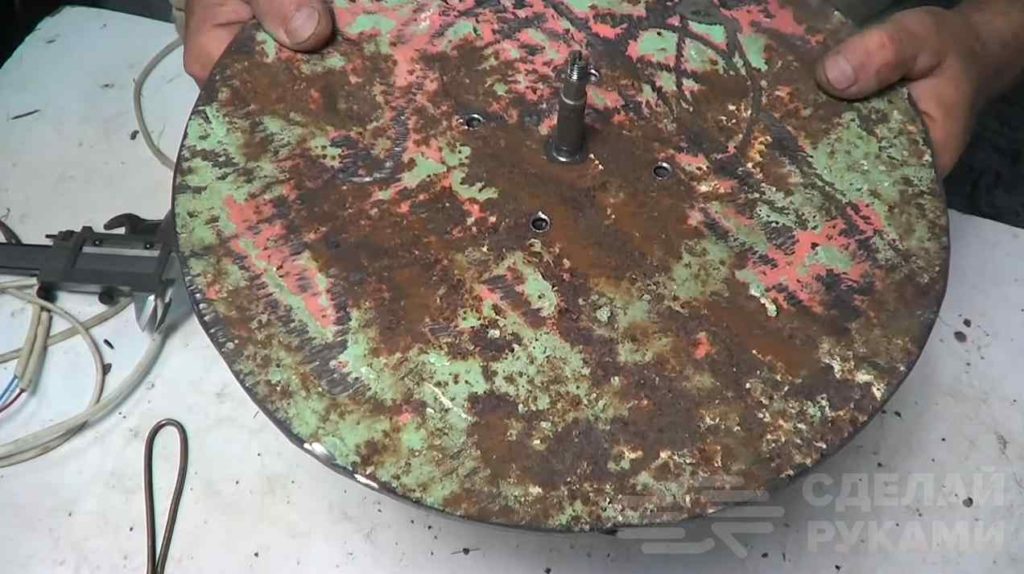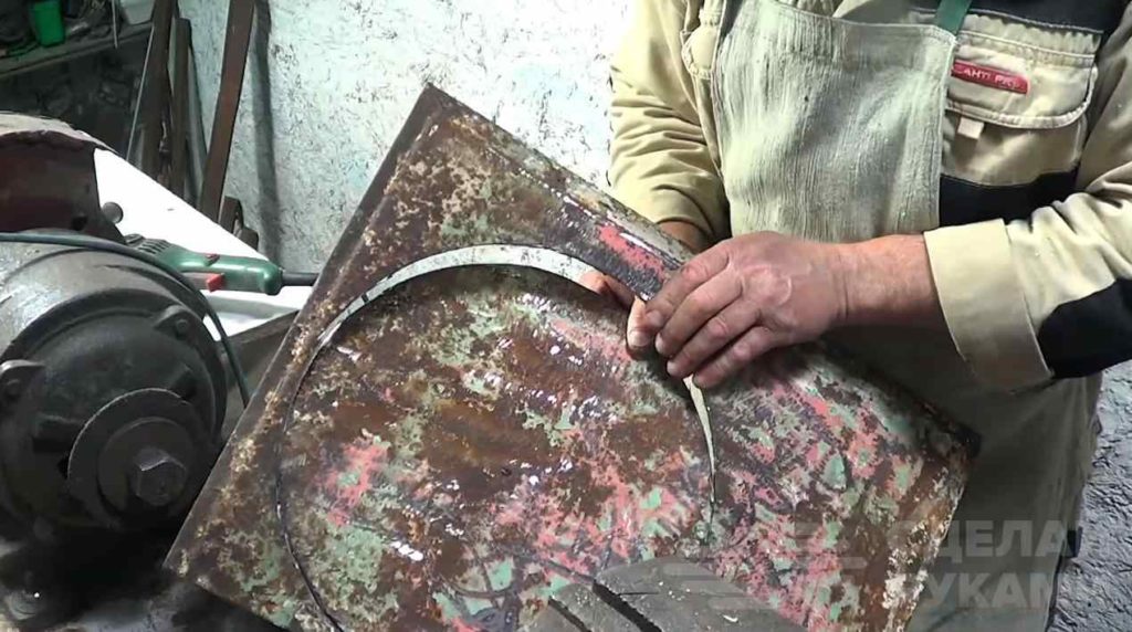 Первым делом из куска листового металла нужно вырезать круг нужного диаметра. Края надо обработать болгаркой с лепестковым диском, чтобы убрать заусенцы.