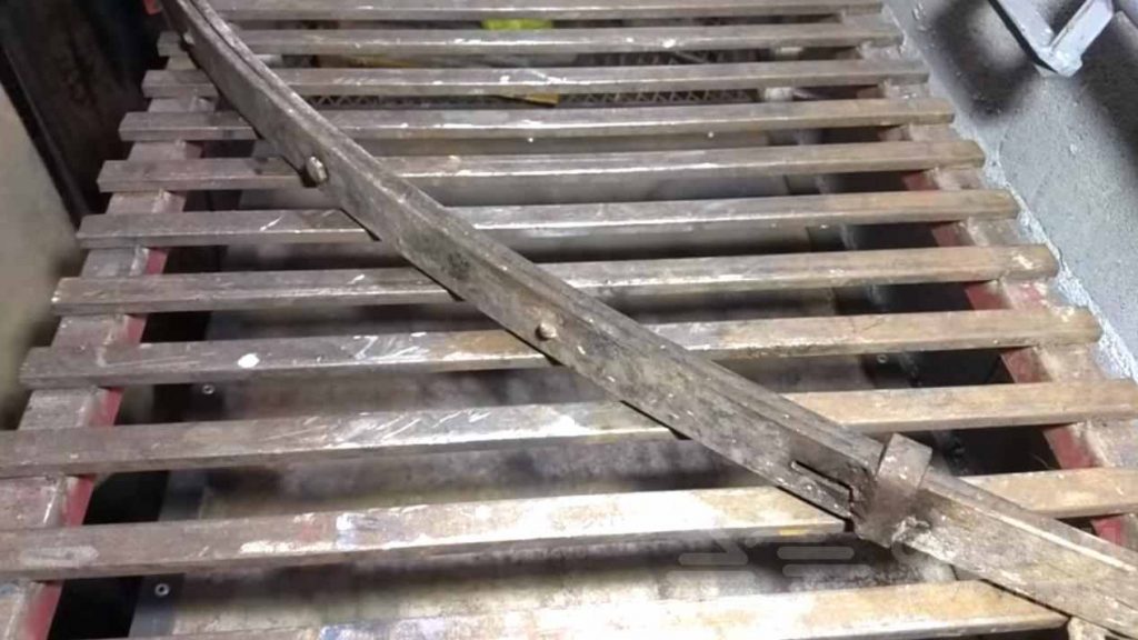 Можно рассмотреть вариант горизонтально расположения режущей поверхности. Для этого проведём всю ту же процедуру, только развернув кусочек рессоры горизонтально и наварив пластинку перпендикулярно к нему.