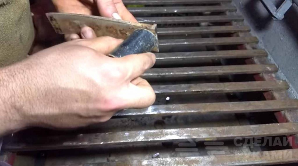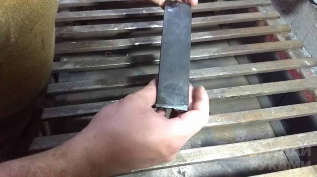 Чтобы самодельная тяпка не сломалась при чрезмерной нагрузке или при попадании на камни, её необходимо будет закалить. В газовом либо угольном горне доводим край нашей заготовки до нужного цвета металла и опускаем в масло.