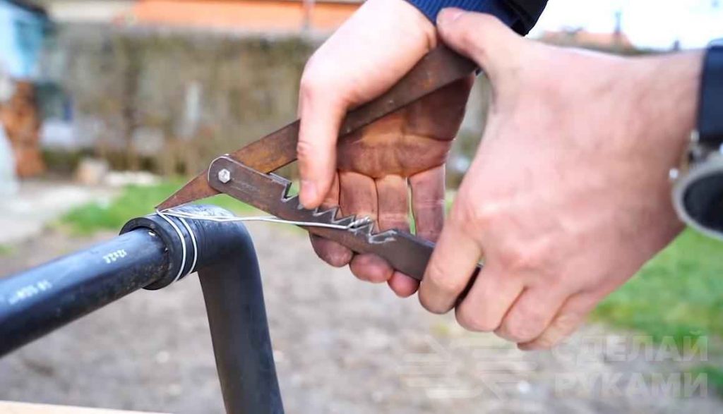 Подробнее о том, как сделать самый простой проволочный хомутатель на скорую руку, рекомендуем посмотреть в видеоролике на нашем сайте. Напишите в комментариях под видео, нравится ли вам такой вариант изготовления хомутателя?
