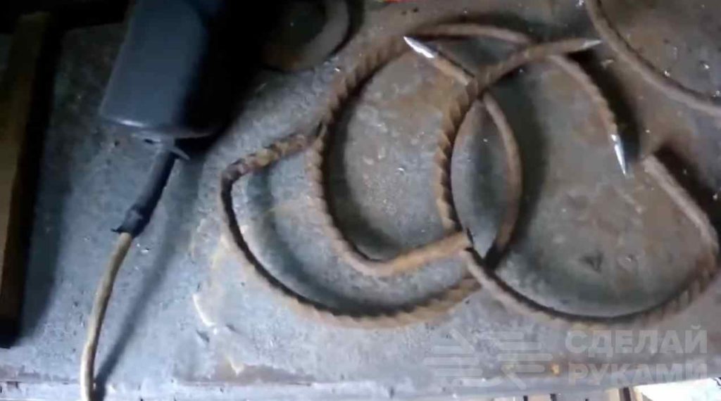 «Хвостики» у заготовок нужно обрезать болгаркой. Таким образом длина уменьшится, будет уже около 30 см. Края прутков необходимо заточить.