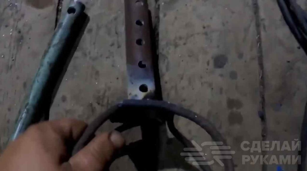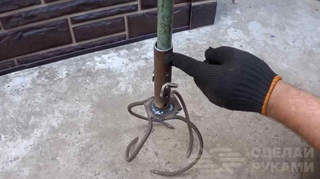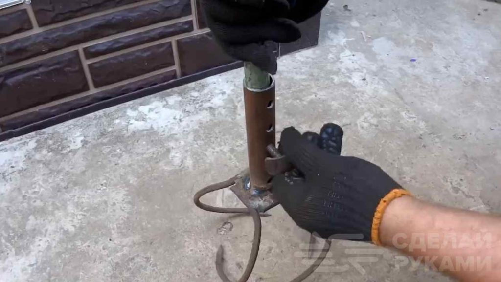 К пластине с «щупальцами» надо приварить кусок стальной дюймовой трубы, в которую будет вставляться отрезок трехчетвертной трубы.