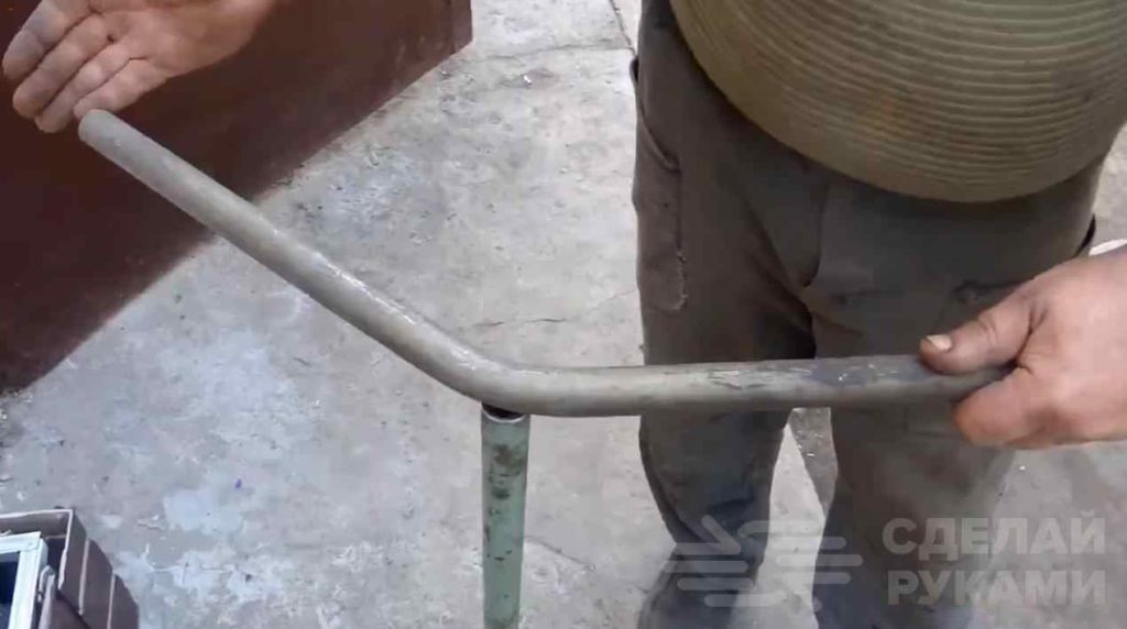После этого останется только приварить к трехчетвертной трубе ручку. Можно использовать для этого кусок стальной трубы, предварительно согнув его.