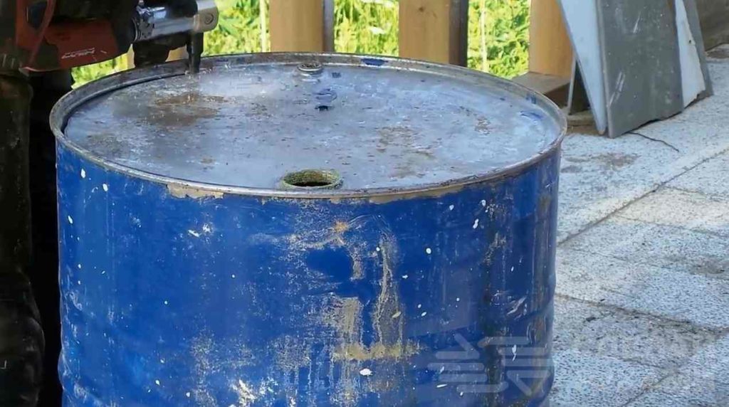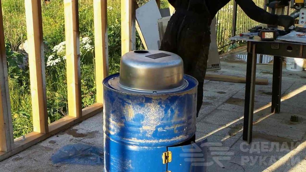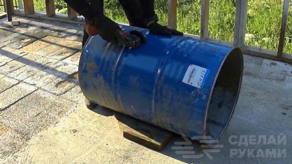 Первым делом автор вырезает верхнюю часть металлической бочки (та, которая с отверстием).