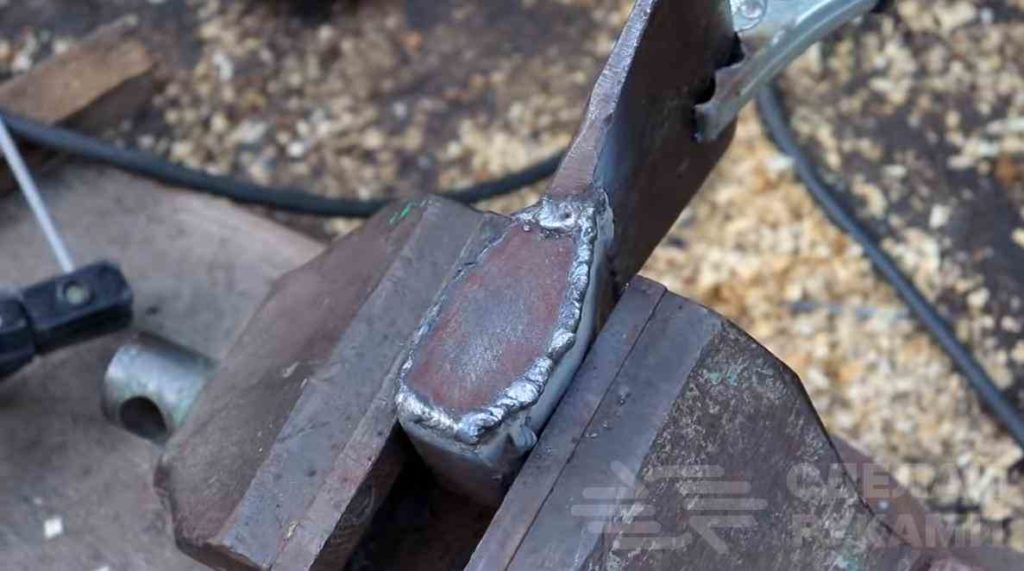 Затем из куска металла вырезаем пластину и привариваем ее к верхней части топора. Необычно, правда? Дальше будет еще необычнее.