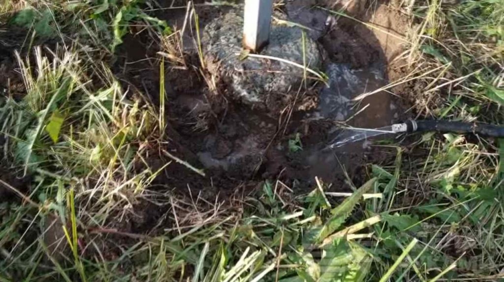 Первым делом необходимо будет обкопать столб примерно на один штык лопаты. А потом землю нужно будет пролить водой.