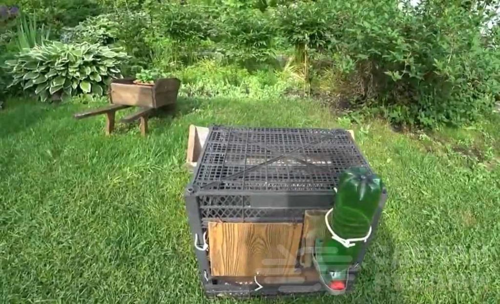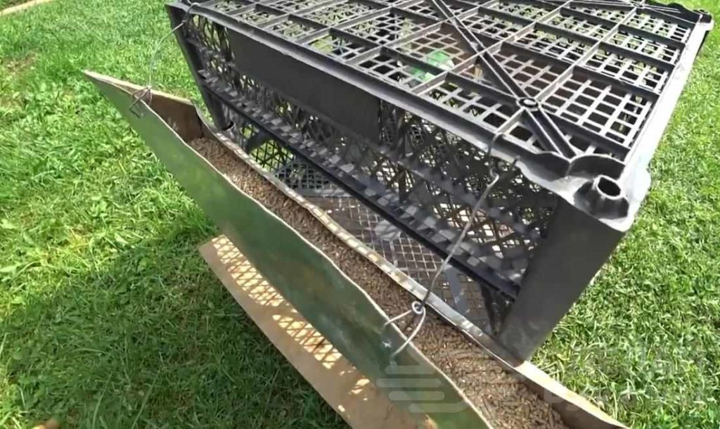 Чтобы сделать по-быстрому клетку для бройлеров, автор предлагает использовать пластмассовые ящики для овощей и фруктов. Всего потребуется три штуки: два из них стоят к низу дном, а третий — перевернут дном вверх.