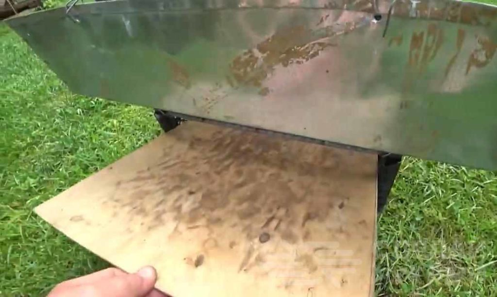 На самый нижний ящик автор положил кусок фанеры, который служит для сбора куриного помета. Дощечка легко вынимается и так же легко вставляется обратно.