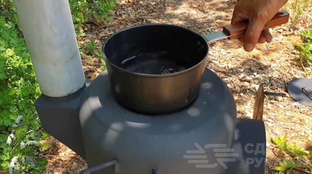 На такой печке можно будет не только воду вскипятить, но и приготовить различные блюда на сковороде или в кастрюле.