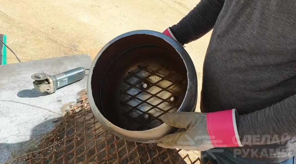 На дно баллона автор устанавливает кусок металлической решетки. Ее диаметр должен быть чуть меньше диаметра баллона.
