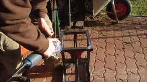 Первым делом необходимо нарезать по размеру заготовки. В данном случае – профильные трубы прямоугольного сечения 25*28 мм (но можно также профиль квадратного сечения использовать). Делаем две одинаковые рамки квадратной формы.