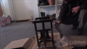 Далее к первой квадратной рамке (основанию дровокола) необходимо приварить 2 вертикальные стойки по бокам — под прямым углом. В данном случае используется профильная труба 20х40 мм, но можно взять профиль другого размера.