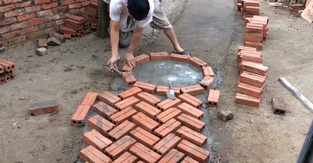Внутреннюю часть круга тоже нужно будет заполнить кирпичами. А можно просто заполнить раствором. В общем, как и что делать — на ваше усмотрение.