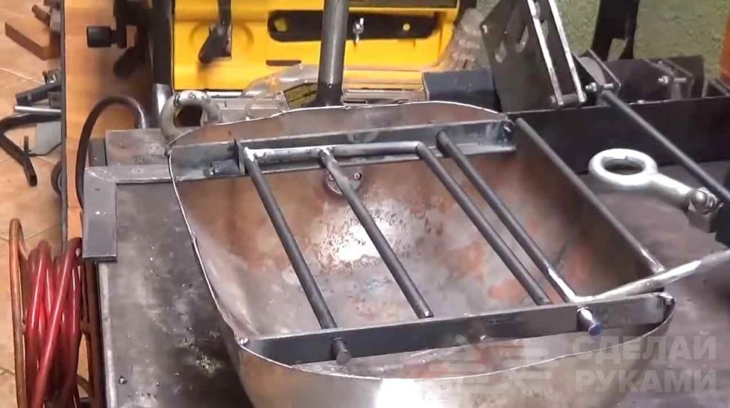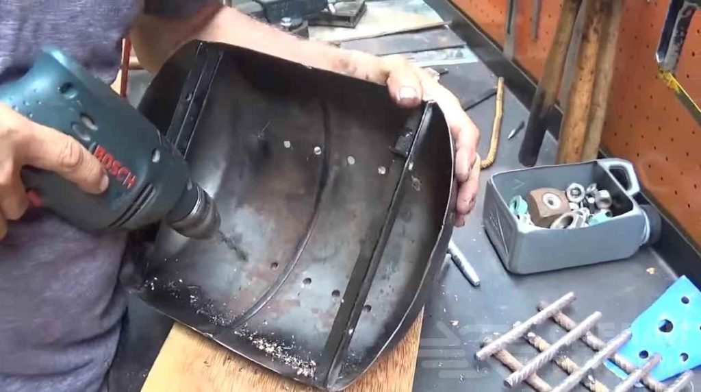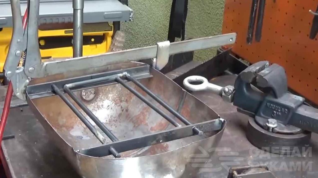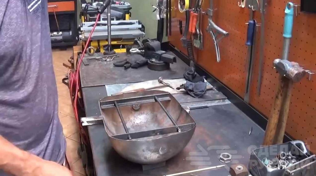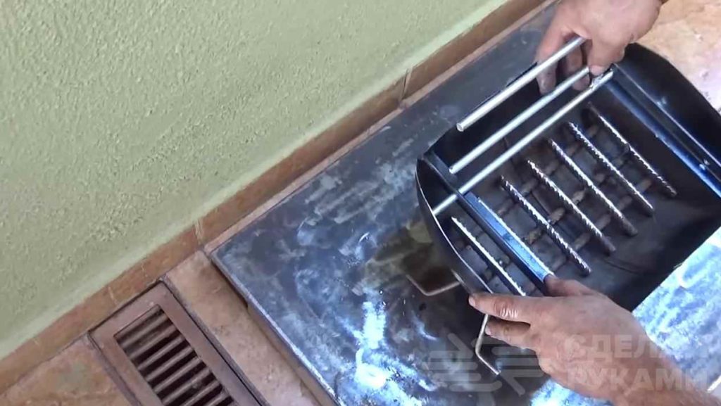 Из кусков арматуры изготавливаем колосник. В чаше нужно будет просверлить отверстия для доступа воздуха. Колосник укладываем на дно чаши.