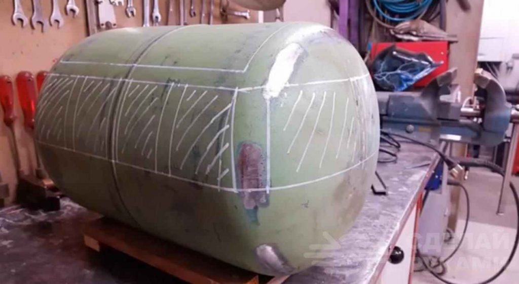 В первую очередь необходимо будет срезать все лишнее на баллоне. Потом мастер рисует мелом окна, которые надо вырезать болгаркой или, например, плазморезом.