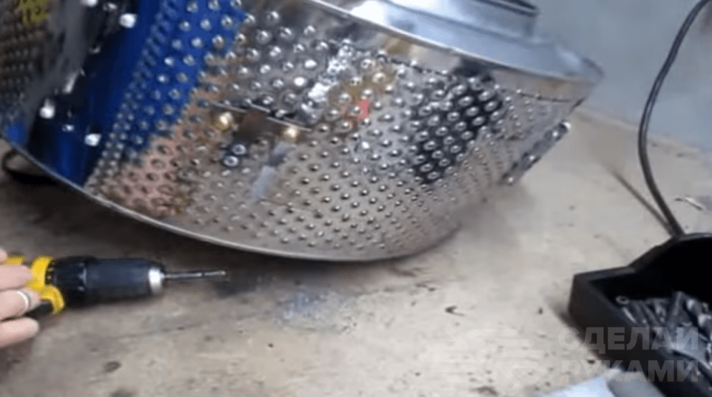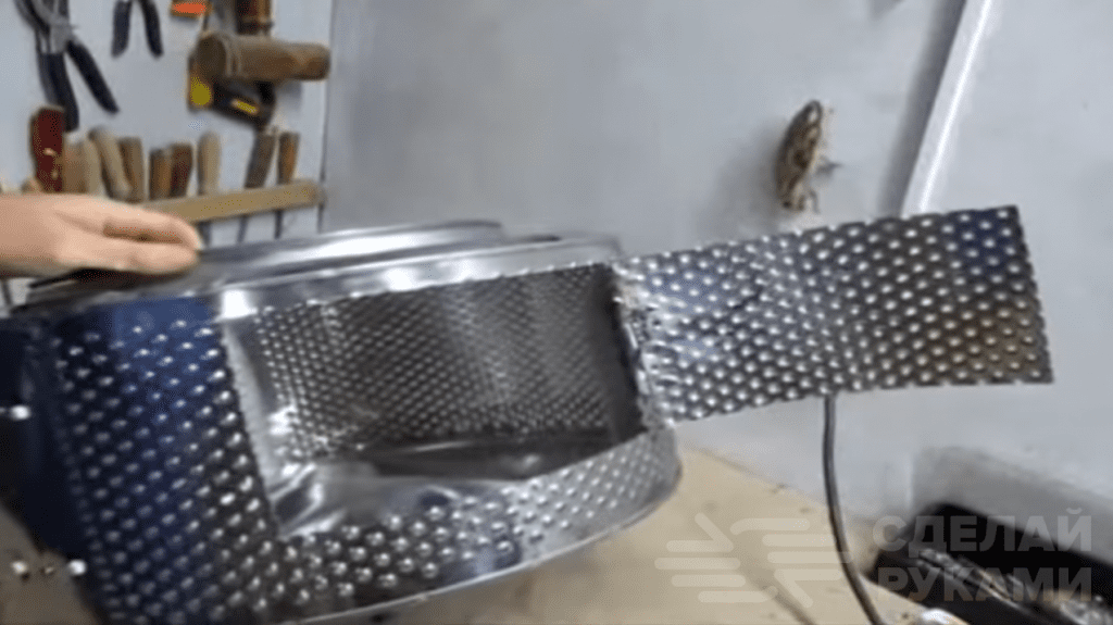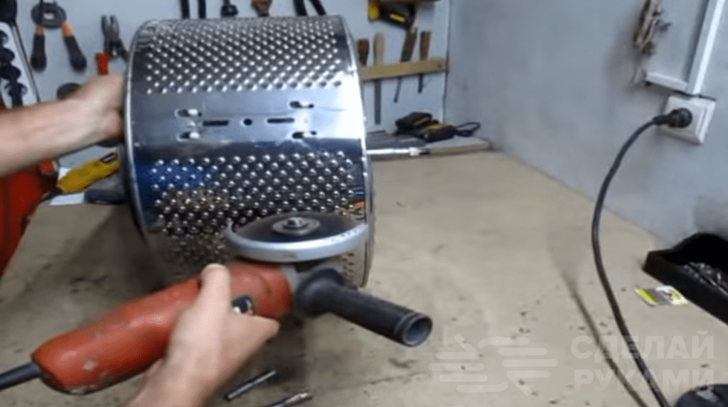 Затем зачищаем места сварки болгаркой. Подробный процесс изготовления мангала для барбекю из барабана стиральной машинки смотрите в видеоролике на сайте.