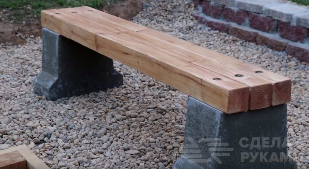 Автор предлагает очень простую идею, как сделать уличную скамейку на бетонных основаниях. Просто и со вкусом, при этом можно сделать своими руками, а не покупать.