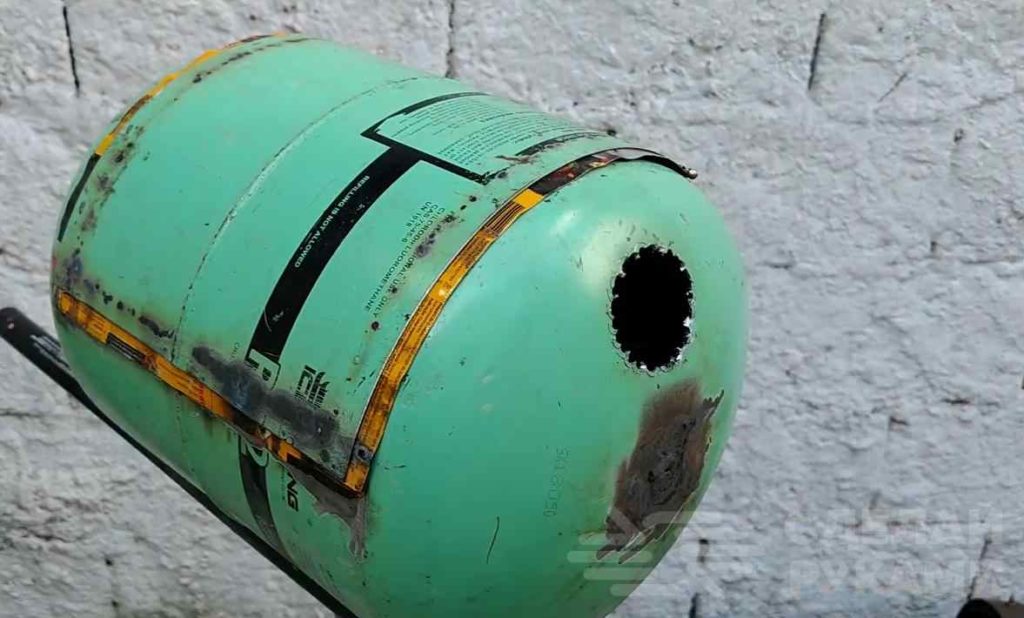 В торцевой части баллона нужно вырезать отверстие круглой формы. Для этого можно использовать коронку по металлу или болгарку.