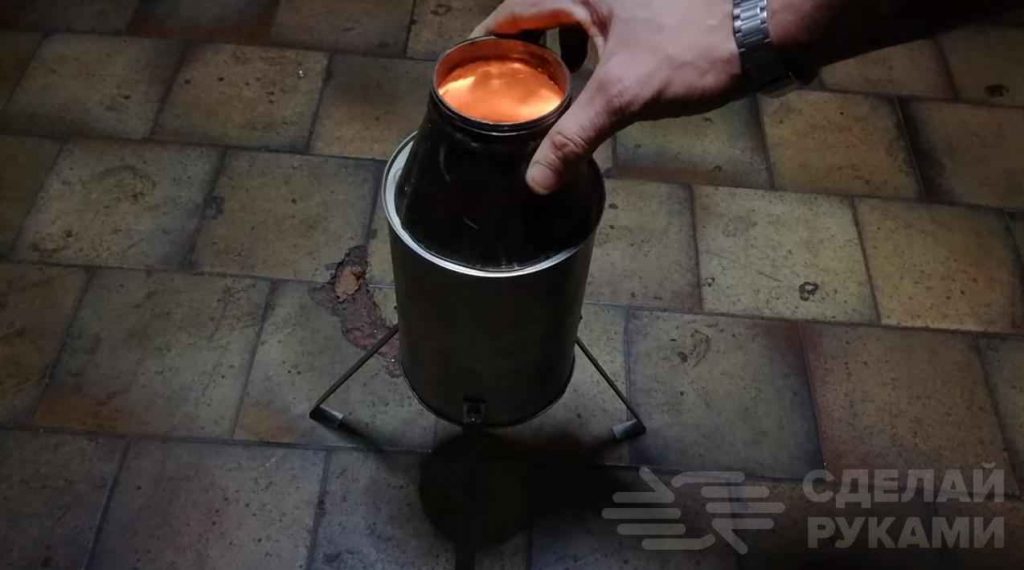 В общем, плюсов достаточно, поэтому почему бы не сделать такую печь? Тем более что для ее изготовления потребуется всего две банки и немного металла. Также ее можно использовать в гараже или другом закрытом помещении, поскольку эта печь абсолютно бездымная.