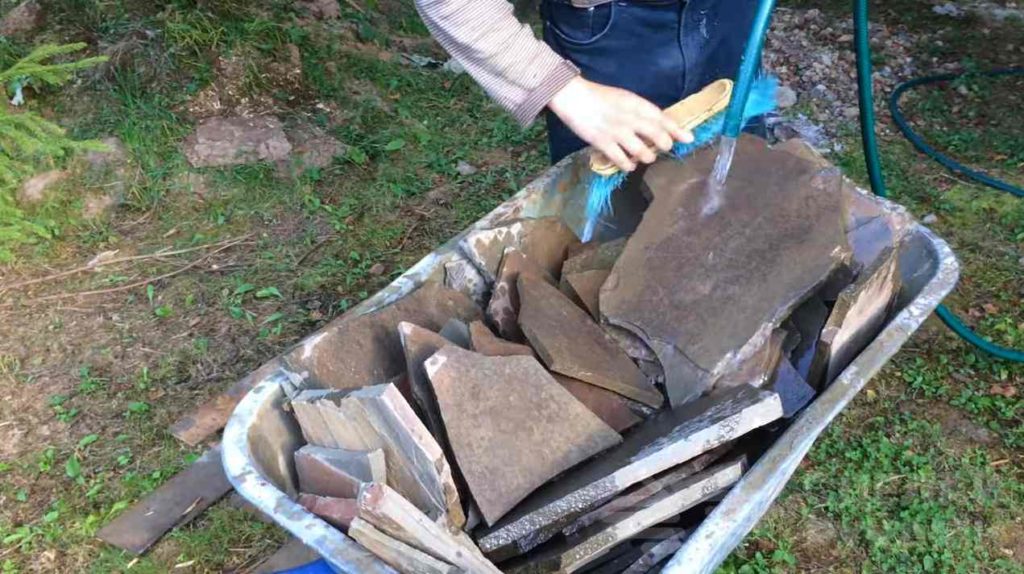 Выждав после укладки дикого камня минимум два дня, можно приступать к заполнению швов цементным раствором.